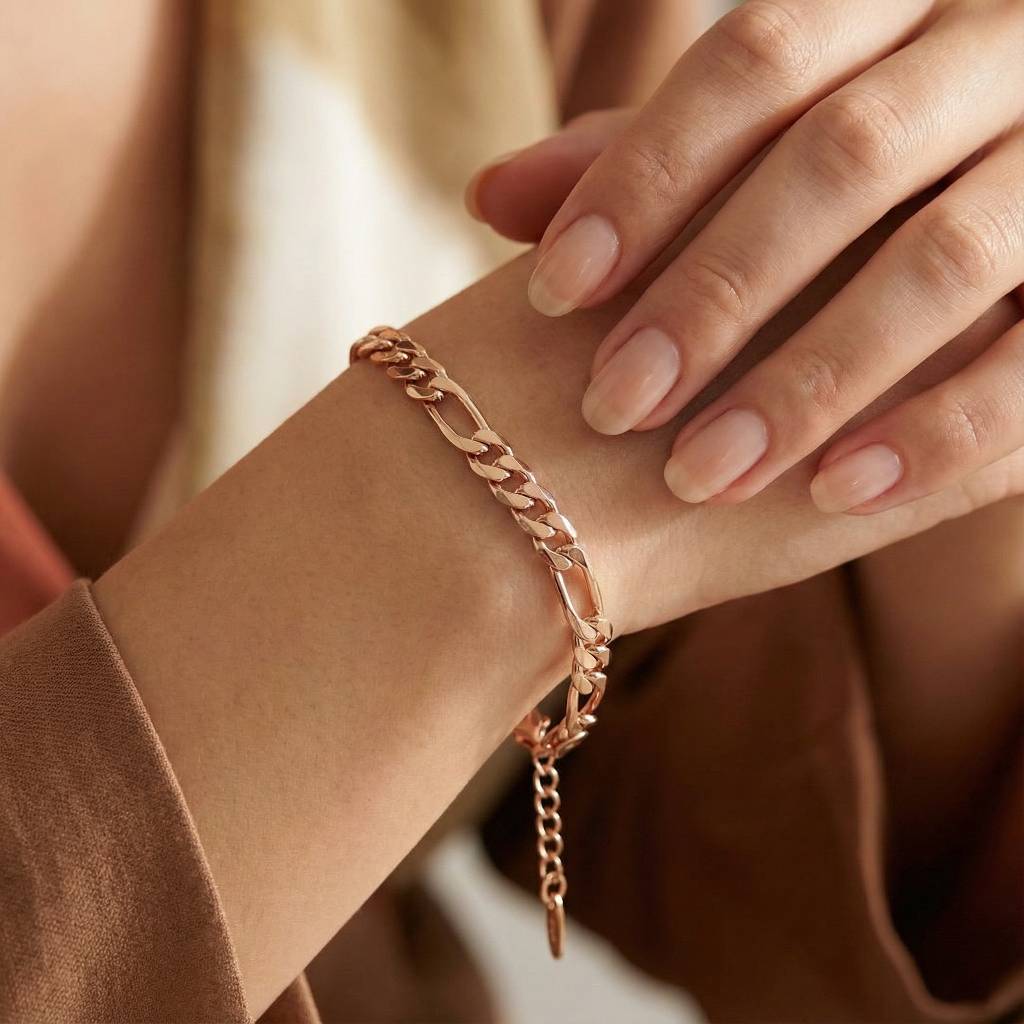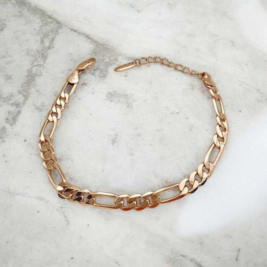 دستبند فیگارو از برند ژوپینگ ضد حساسیت روکش طلا رنگ ثابت جنس مس دو لایه روکش طلا دارای زنجیر تنظیم سایز