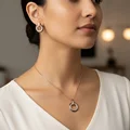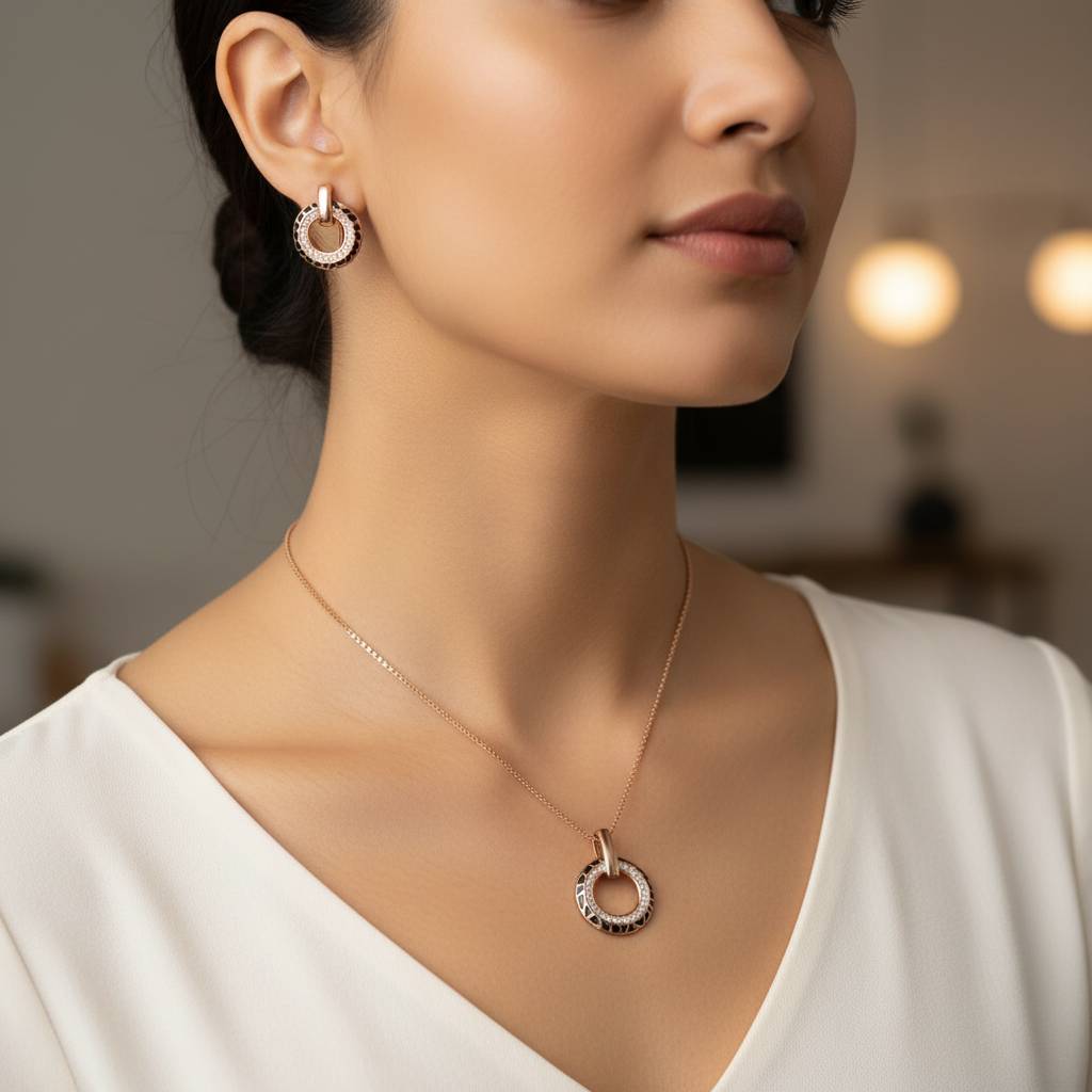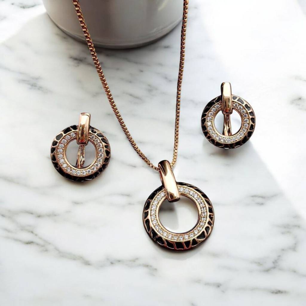 نیم ست شامل گردنبند ( پلاک و زنجیر) و گوشواره ضد حساسیت روکش طلا رنگ ثابت از برند ژوپینگ فوق العاده ظریف و شیک