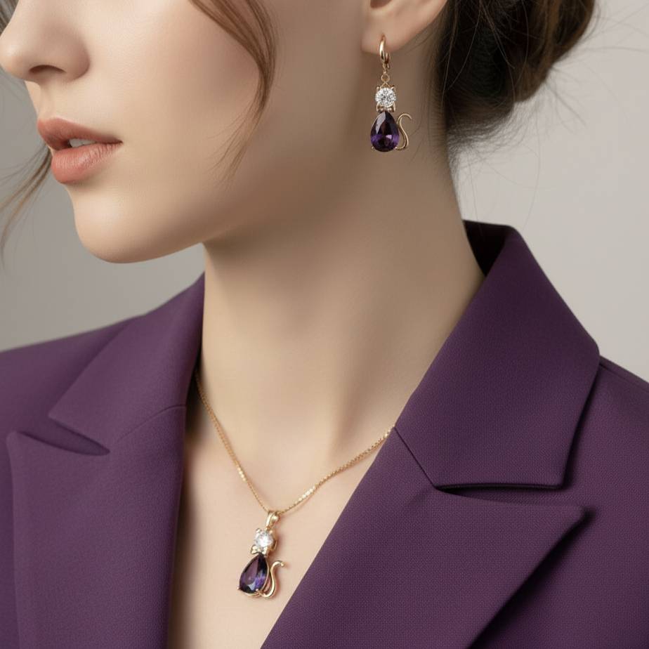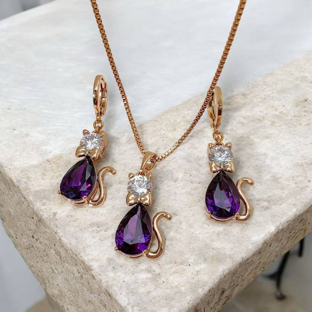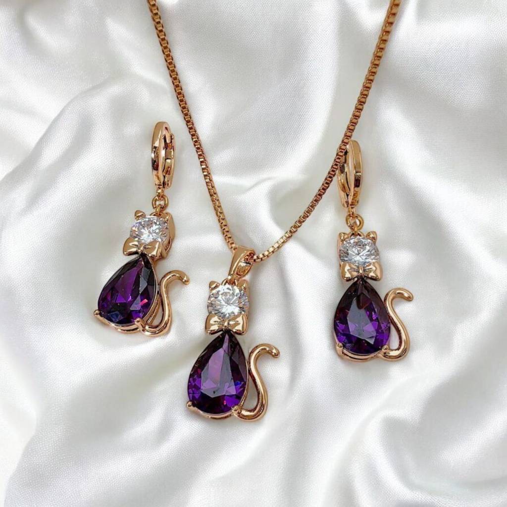 نیم ست شامل گردنبند ( پلاک و زنجیر) و گوشواره ضد حساسیت روکش طلا رنگ ثابت از برند ژوپینگ فوق العاده ظریف و شیک
