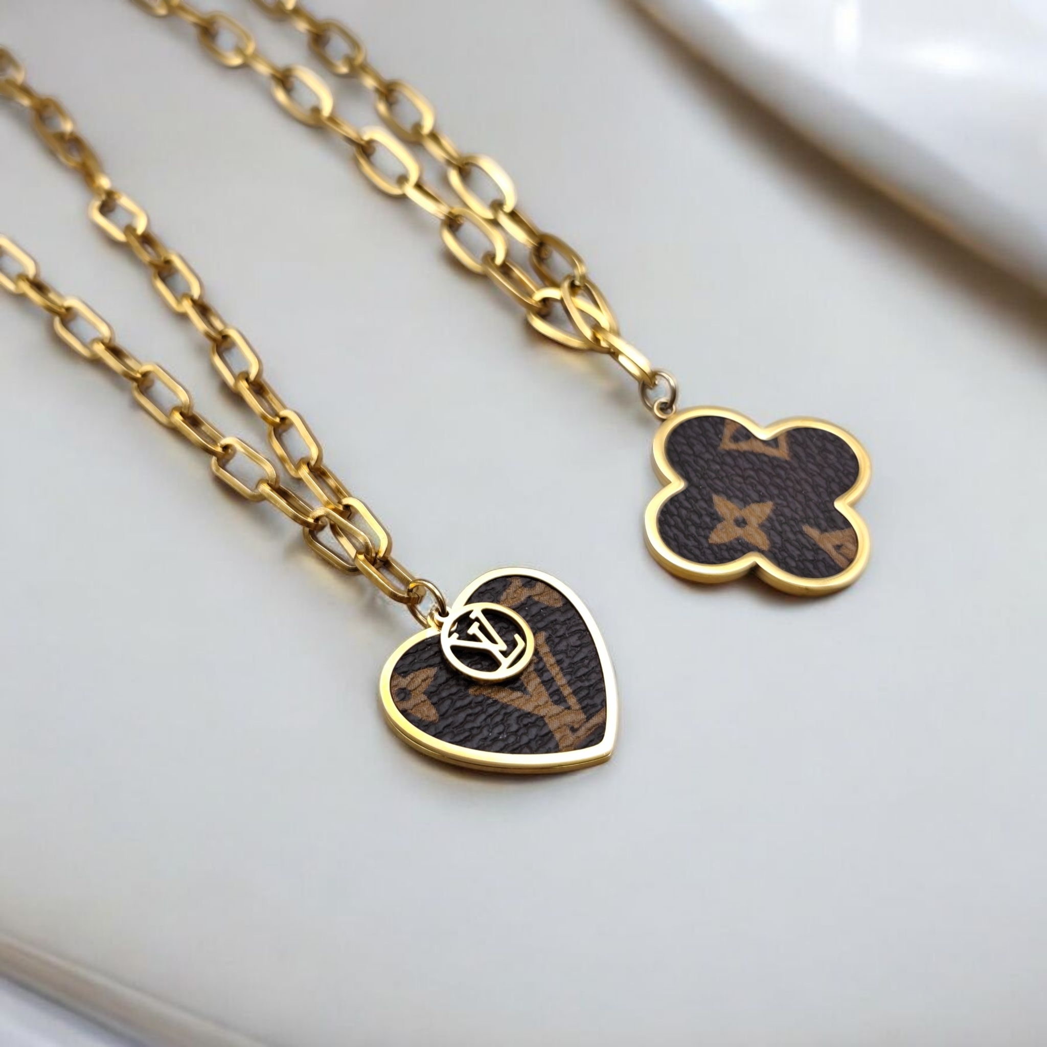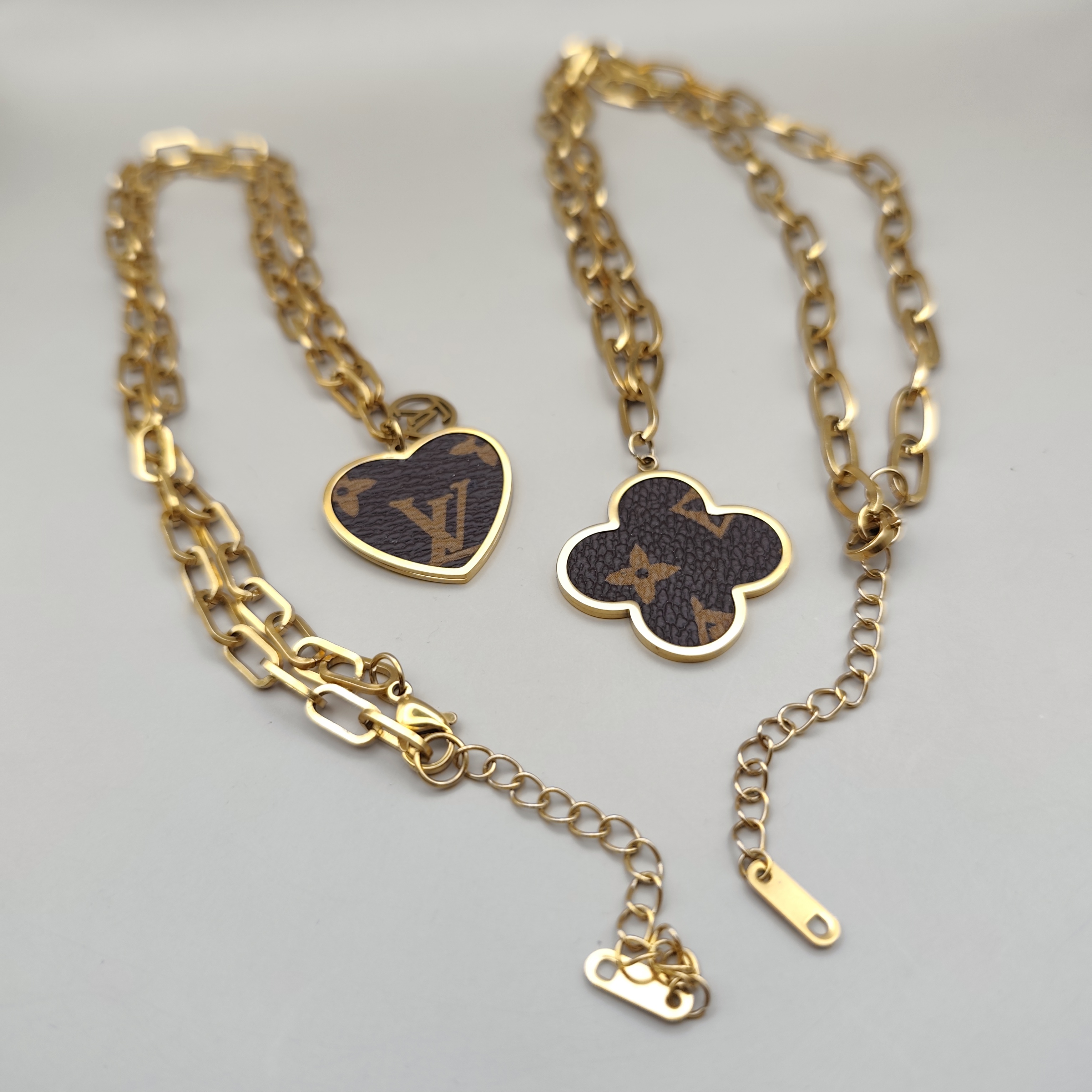 آویز رو لباسی، مدل ونکلیف و لویی ویتون قلبی زنجیر حدود ۳۰ سانت آویز میشود. استیل روکش طلای مات بسیار خاص
