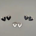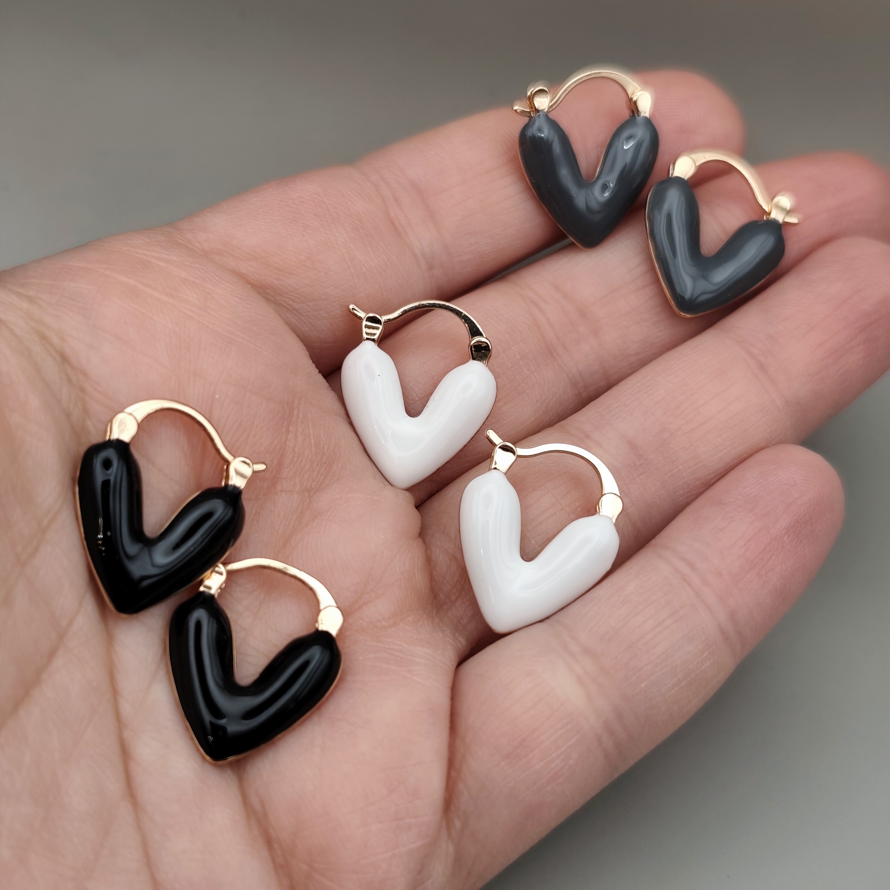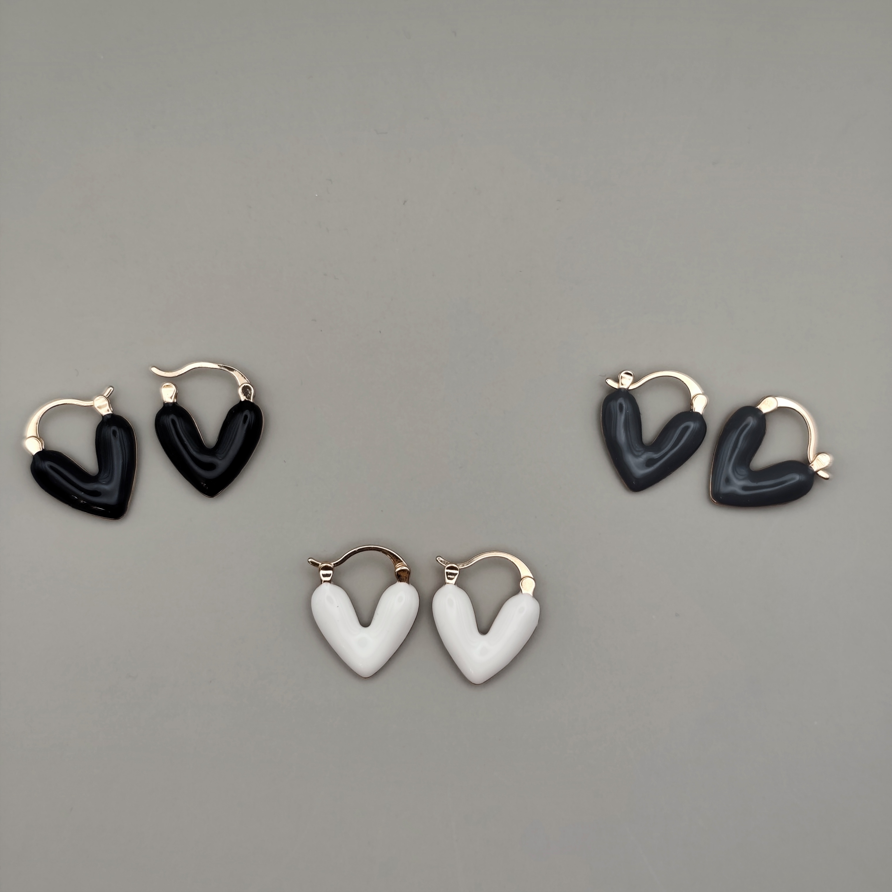 گوشواره میناکاری قلبی از برند وای اس ایکس در سه رنگ طوسی و مشکی و سفید رنگ ثابت ضد حساسیت روکش طلا