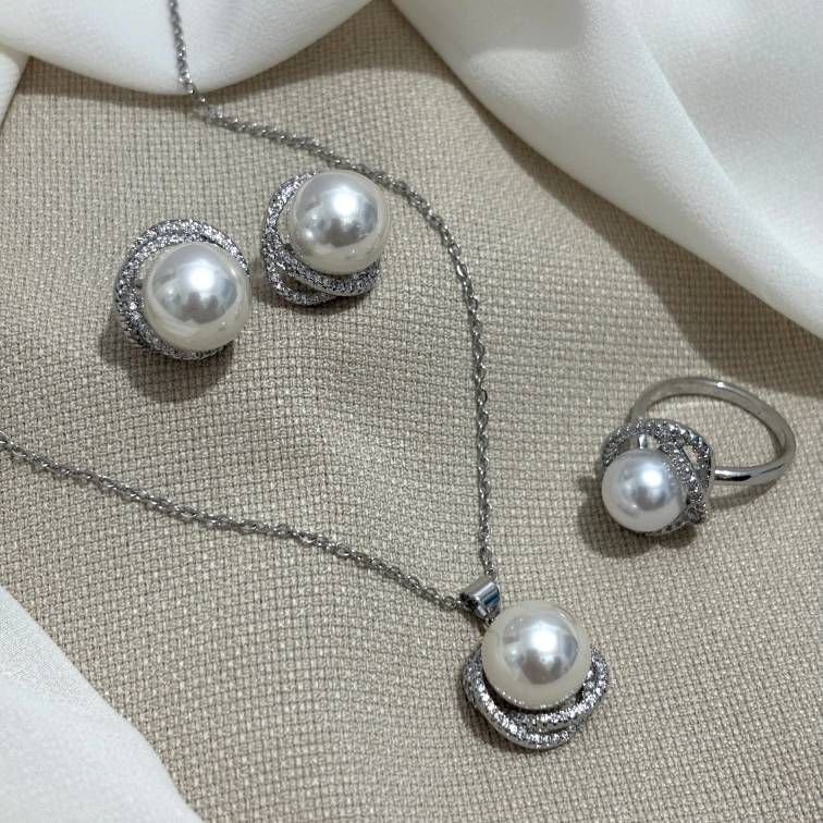 شامل گردنبند و گوشواره رنگ ثابت روکش رادیوم ضد حساسیت نگین ها مخراجکاری شده.